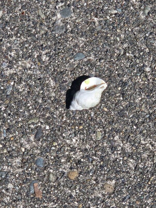 “Here” was the middle of a neighborhood sidewalk, far from the seashore, with no other seashells in sight. A fish out of water – or a seashell out of sand.