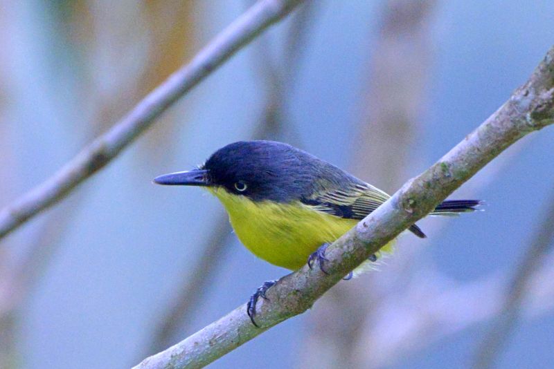 Have you ever wondered whether Jacob resented his given name? Did he hold it against his parents for giving him such a derisive title and did it do anything to shape the decisions he made? That’s something we have no way of knowing, but somehow or the other I expected a saucy bird like the Common Tody-Flyctcher to have a better storyline behind its name than it does. This tiny bird with the big head is a common nester from the southern part of Mexico to northwestern Peru. Found among scattered trees and scrub, this sociable bird flits among the foliage, often with its tail cocked jauntily over its back.