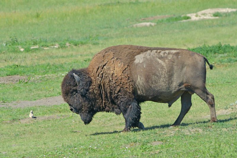 The wide open prairies of the Midwest are the home of two mammals that live in close contact with each other. But it’s the contrast between the size of these two creatures that cannot help but catch our attention. The male American Bison can weigh up to 2,599 pounds while an adult Black-tailed Prairie Dog will be lucky to weigh in at 48 ounces. Yet for all their differences, they seem to peacefully coexist. Frequently when two species are found in the same area the success of their habitation centers around the fact that they feed on different organisms and as a result are not in competition with each other. Yet with these two, there are marked similarities in their diet.