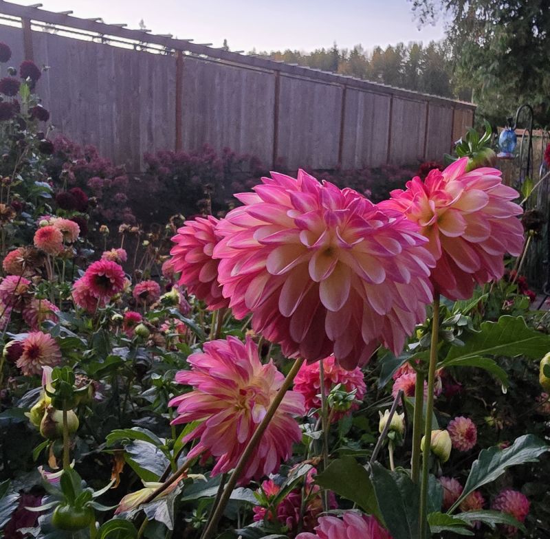 This past week, I was out in our yard before sunrise and noticed how colorful and gorgeous the dahlias are still. It’s mid-October and we had a hailstorm the day prior. These blooms have been through a lot, and yet here they are, shining their vibrant colors and standing tall.