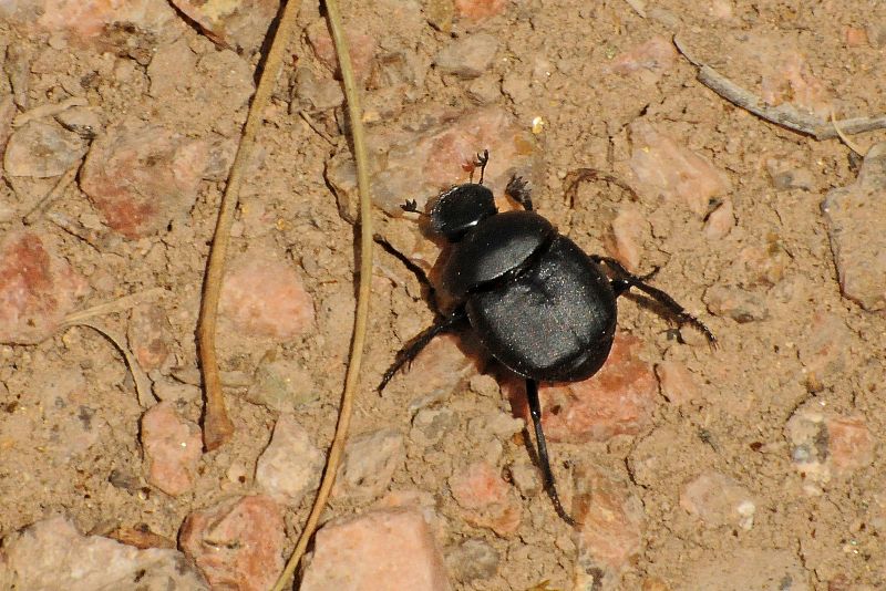 There are many species that carry this name but they all feed at least partially or exclusively on feces or dung. They can be placed into three different categories, but the one shown here would be placed in the roller group. They are assigned this classification because they energetically roll a ball of dung to what they consider to be an appropriate stop to bury it to be used later as a food source or breeding chamber. And it was this rolling process that caught the eye of the afore- mentioned author and myself.