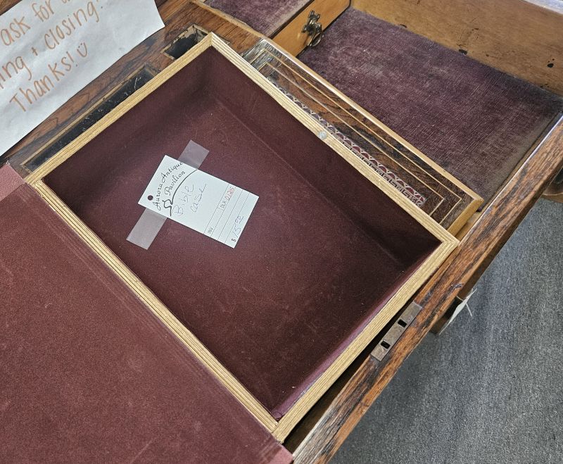 Now, as I’m uploading them and writing this blog, I see what’s written on the slip of white paper within the case. If you’re not able to zoom in your phone enough, I’ll let you know what it says: “Bible case.”