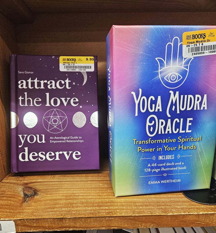 In most bookstores – including this HalfPrice Book store – I’ve noticed that the new-age and occult section is always located very close to the religion/Christianity section. This means that as I head over to religion, my eye is sometimes caught by the new-age material.