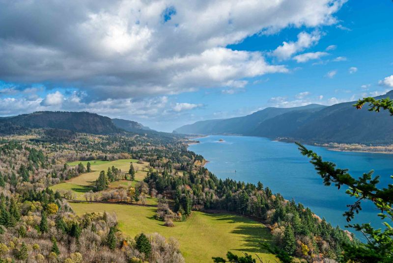 I hope you enjoy this scene comprised of a river, mountains, fields, trees, and white puffy clouds under a blue sky. For me, I am looking home. I can see Beacon Rock hiding in the background. In my mind’s eye, I see the Bonneville Dam and the Bridge of the Gods. Home for each of us is different, but the memories we have remain vivid.