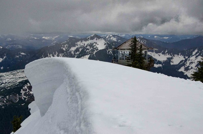 In a recent blog, I treated the Granite Mountain Lookout as a metaphor of God’s refuge from the storms. Today, our photo highlights the danger of presuming on God’s grace and protection. Here, winter has fully engulfed the Lookout. The route to the summit during winter poses significant danger due to the avalanche paths that encompass the southern flanks of the mountain. Additional risks from extensive cornices can be seen on the left side of the photo.
