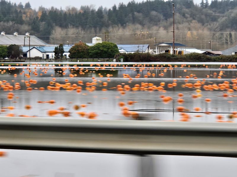I hadn’t thought of the Stewarts’ party for many years until last week, when we drove State Route 167 through Kent and saw hundreds of pumpkins bobbing in the flooded fields. A few days later we weren’t able to make that drive; a six-mile stretch of the road, including the route we drove, was closed both north and south due to continued flooding.