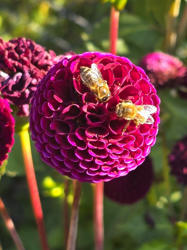 Take a glance at the image I captured in our garden yesterday. Here we have two honeybees in the morning sunshine, collecting pollen from this vibrant purple dahlia. Of course this is a still image and you are going to have to take my word for it, but they didn’t battle with each other. They didn’t pull one another off the flower. No, they went about their “bees-ness” (see what I did there?) and collected their pollen — plenty to go around. They shared.