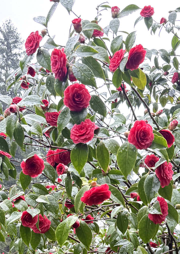 Last week another camellia bush burst into blossom. At least that is the way it seemed. It was a nice surprise to walk outside, after all the rain we have had recently, to see new flowers in bloom.