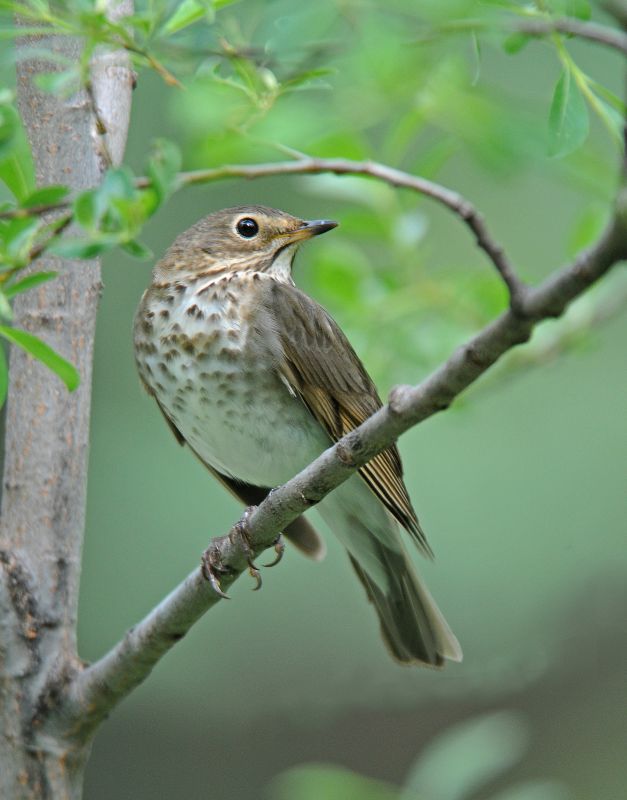 Even though the Swainson’s Thrush nests across North America, primarily north of the 49th parallel, for some reason it wasn’t discovered until 1840 from a bird found near Vancouver, Washington. It prefers to nest in coniferous forests at higher elevations, but will also use mixed growth forests at lower levels. Unlike many birds, it often sings during migration, which is a bit surprising since we often assume males sing to establish breeding territory which in turn attracts females. Obviously, this must not be the case here as the birds continue to move northward.