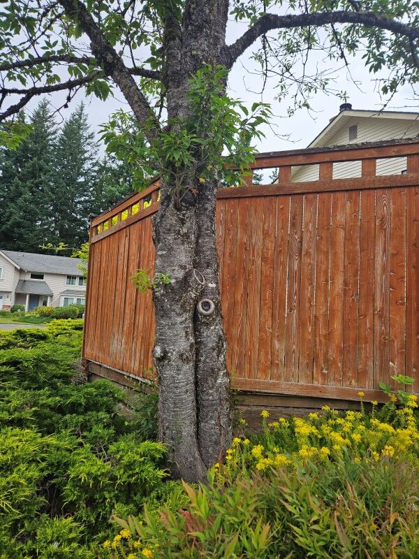 But just look at them. They’re side by side, equally healthy. Neither has been overshadowed or shouldered aside by the other. Neither has sensed the need to slope sideways and go its own way. Year by year, the closest of buddies, they have grown together.